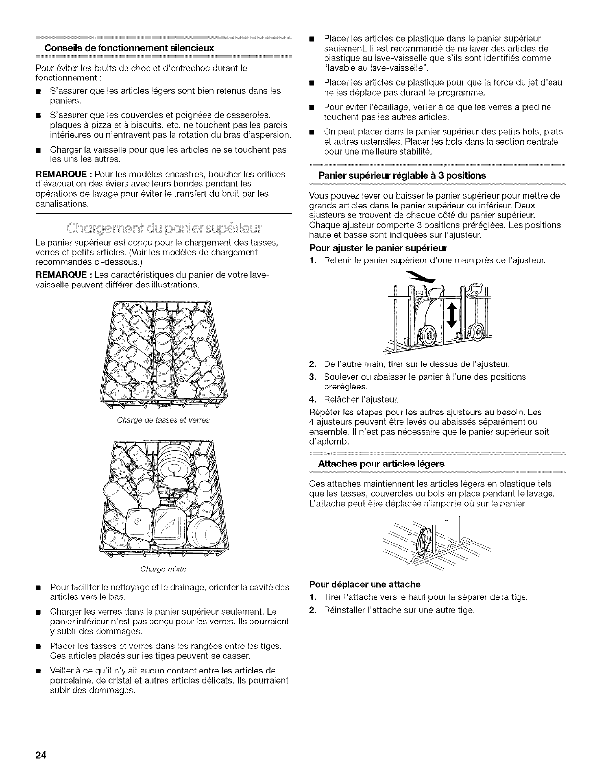 Vous pouvez lever ou baisser le panier superieur pour mettre de