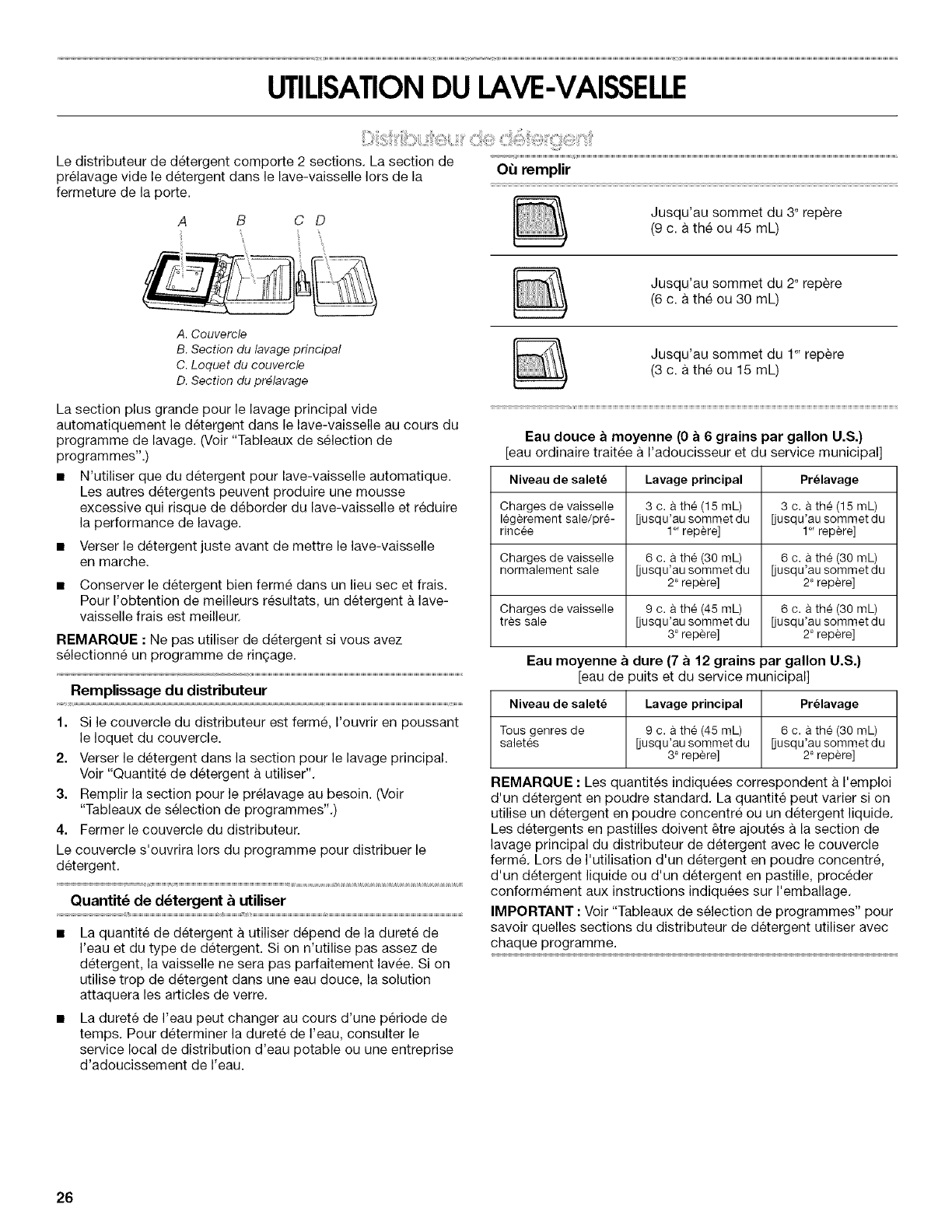 Les detergents en pastilles doivent 6tre ajoutes a la section de