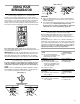 Mid-setting “4” USING YOUR REFRIGERATOR Ensuring Proper Air Circulation In order to ensure proper temperatures, you need to permit airflow between the refrigerator and freezer sections. As shown in the illustration, cool air enters through the bottom of the freezer section and moves up. Most of the air then flows through the freezer section vents and recirculates under the freezer floor. The rest of the air enters the refrigerator section through the top vent. REFRIGERATOR 4 4 FREEZER .