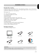 English INTRODUCTION Product Description Congratulations on purchasing this new generation monitor. Your LCD monitor incorporates high quality display into a small light-weight module. It has power-saving capabilities and emits no X-ray radiation. The features are: • • • • • • • • • • • • 17" TFT Liquid Crystal Display Compatible with IBM VGA, VESA Direct RGB input Direct DVI input SXGA 1280x1024 resolution, up to 16M colors Lightweight compact design, weighting less than 6.