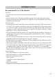 English INTRODUCTION Recommended Use of the Monitor • Power – Use the type of power indicated on the marking label. • Plugs – Do not remove any of the prongs of the monitor's three-pronged power plug. – Disconnect the power plug from the AC outlet if you are not going to use it for an indefinite period of time. • Power cords – Use the proper power cord with correct attachment plug type. If the power source is 120 VC, use a power cord that has UL and CSA approvals.
