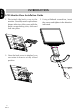 English INTRODUCTION LCD Monitor Base Installation Guide 1. First attach the back cover to the monitor. Carefully match up the three hinges at the top of the cover with the three corresponding slots; slide and lock into place. 2. Once the back cover is attached, you can rotate it down to a fully closed position. 6 ♦♦♦ 3. Using a flathead screwdriver, insert the screws and tighten in the direction indicated.