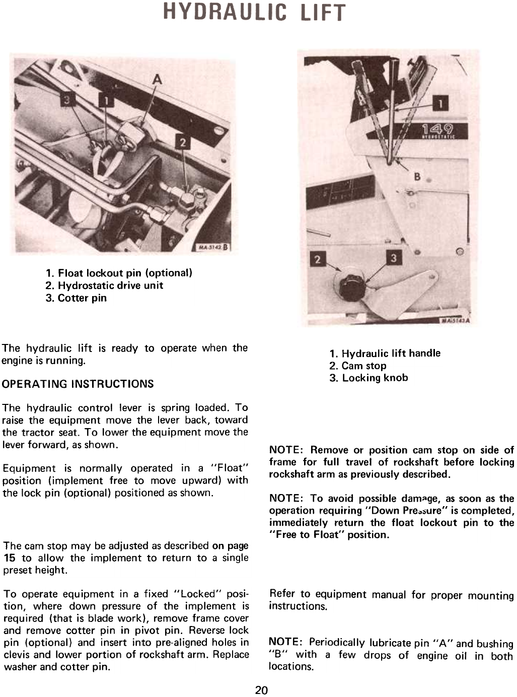 1. Hydraulic lift handle2.
