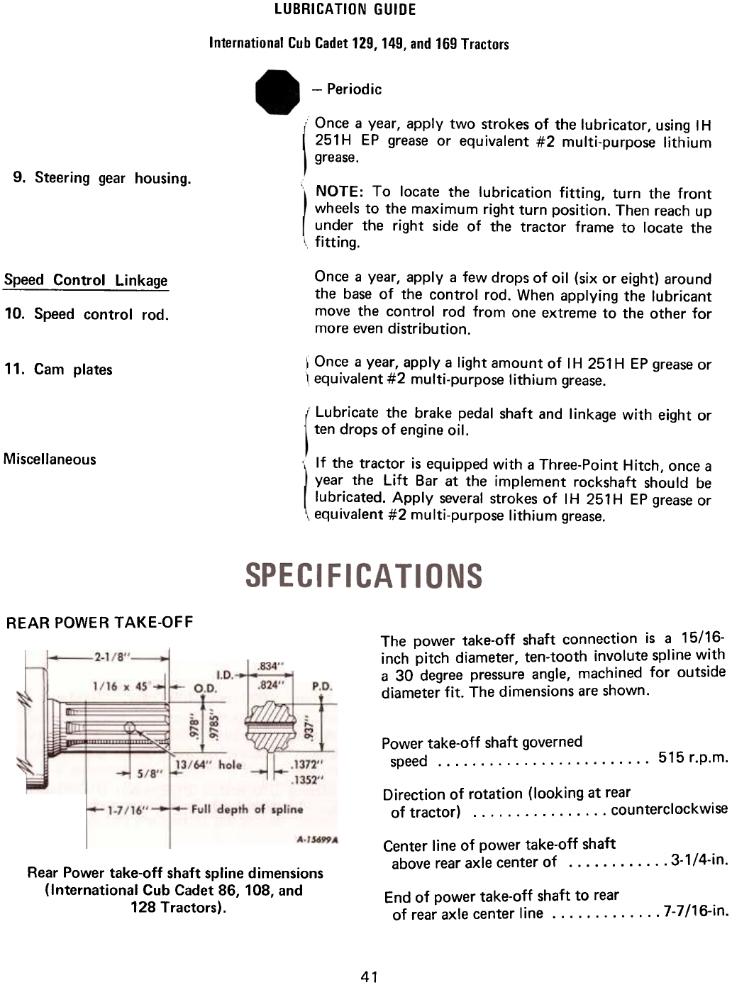 International Cub Cadet 129, 149, and 169 Tractors