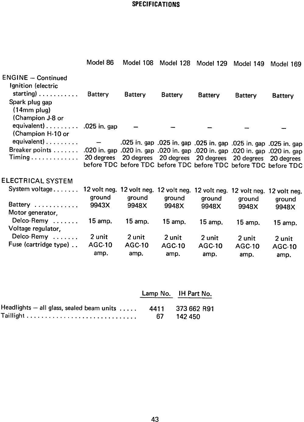 Lamp No. IH Part No.