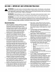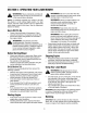 10. Neveroverfillfueltank.Filltankto nomorethan½ inchbelowbottomoffillernecktoprovidespacefor fuelexpansion. 11. Replace gasolinecapandtightensecurely. 12. Ifgasolineis spilled,wipeitofftheengineand equipment. Moveunittoanotherarea.Wait5 minutesbeforestartingtheengine. 13. Neverstorethemachineorfuelcontainerinside wherethereisanopenflame,sparkorpilotlightas ona waterheater,spaceheater,furnace,clothes dryerorothergasappliances. 14.Toreducefirehazard,keepmowerfreeofgrass, leaves,orotherdebrisbuild-up.