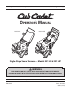 Safe Operation Practices • Set-Up • Operation • Maintenance • Service • Troubleshooting • Warranty Operator’s Manual Model 221 HP Model 221 LHP Single-Stage Snow Thrower — Models 221 HP & 221 LHP WARNING READ AND FOLLOW ALL SAFETY RULES AND INSTRUCTIONS IN THIS MANUAL BEFORE ATTEMPTING TO OPERATE THIS MACHINE. FAILURE TO COMPLY WITH THESE INSTRUCTIONS MAY RESULT IN PERSONAL INJURY. CUB CADET LLC, P.O. BOX 361131 CLEVELAND, OHIO 44136-0019 Printed In USA Form No.