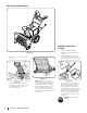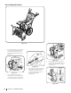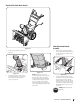 4. Grasp indented portion of chute control rod and manually rotate chute assembly to the right or to the left. See Figure 3-12. Starting and Stopping the Engine IMPORTANT: On 3-stage units, there is an additional shear pin in the rear accelerator. WARNING! Always keep hands and feet clear of moving parts. Do not use a pressurized starting fluid. Vapors are flammable. CAUTION: NEVER replace the auger shear pins with anything other than OEM Part No. 738-04124A replacement shear pins.