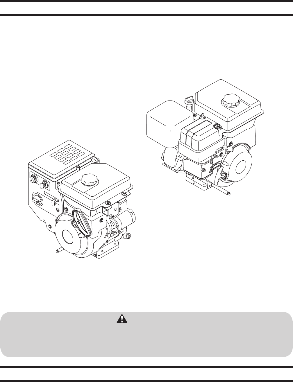 follow these instructions: 7. Grasp the starter cord handle. • Pull rope out slowly until you feel drag. • Without allowing the rope to retract, continue pulling the rope with one rapid full arm stroke. • Return the rope slowly to the original position. Stopping the Engine & Short Term Storage Stop engine in accordance with the equipment Operator’s Manual. WARNING! To avoid unsupervised engine operation, especially by children, NEVER leave the engine unattended while running.