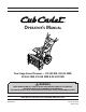 1 To The Owner Thank You Thank you for purchasing a Cub Cadet Snow Thrower. It was carefully engineered to provide excellent performance when properly operated and maintained. If applicable, the power testing information used to establish the power rating of the engine equipped on this machine can be found at www.opei.org or the engine manufacturer’s web site. Please read this entire manual prior to operating the equipment.