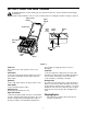 SECTION 3: KNOW YOUR SNOW THROWER Be familiar with all the controls and their proper operation. Know how to stop the machine and disengage them quickly. • Compare Figure 9 with the controls on your snow thrower before starting the machine or trying to operate it. Auger Control Handle Upper Handle Chute Crank Spark Plug Cover Primer Button Ignition Key Discharge Chute Starter Handle Choke Lever Off On Shave Plate Auger Figure 9 Choke Lever upper handle to engage the augers; release to disengage.