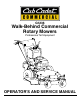 FOREWORD The Cub Cadet Commercial, Walk-Behind, Rotary Mowers have been developed for use by professional landscapers, commercial lawn service companies, professional turf managers and golf course superintendents. The machines incorporate many safety features that should be studied by all operators and maintenance personnel before use. The list of safety precautions should receive particular attention.