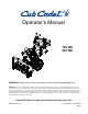 MANUFACTURER’S LIMITED WARRANTY FOR: TWO-YEAR RESIDENTIAL ONE-YEAR COMMERCIAL Proper maintenance of your Cub Cadet equipment is the owner’s responsibility. Follow the instructions in your operator’s manual for correct lubricants and maintenance schedule. Your Cub Cadet dealer carries a complete line of quality lubricants and filters for your equipment’s engine, transmission, chassis and attachments.