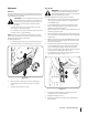 Drive Control Chute Directional Control When the drive control is released and in the disengaged “up” position, the cable should have very little slack. It should NOT be tight. If the chute assembly does not have full range from left-to-right, the chute control cables can be adjusted to take up slack: NOTE: If excessive slack is present in the drive cable or if the snow thrower’s drive is disengaging intermittently during operation, the cable may be in need of adjustment. 1.