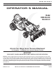 This Operator’s Manual is an important part of your snow thrower attachment. It will help you assemble, prepare and maintain the unit for best performance. Please read and understand what it says. TABLE OF CONTENTS 1. Rider Model Identification ................................ Page 3 2. Snow Thrower Attachment Safety ................... Page 4-5 3. Carton Contents .............................................. Page 6-7 4. Assembly Models 600-649 & 800 Series ........ Page 8-13 5.
