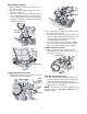 • • • Push idler away from the chute and insert a Philips head screwdriver in the hole on the idler as shown in Figure 26. This will release tension on drive belt. Drive Belt Engine Pulley Auger Belt Friction Wheel Rubber • Idler • • • • • Figure 26 • • • • Pull drive belt out and away from the engine pulley to remove. See Figure 26. Tip the snow thrower up and forward, so that it rests on the housing.