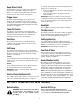 Auger Drive Control To change the direction in which discharged snow is thrown, proceed as follows: • Push the toggle switch to the left to rotate the chute counterclockwise. • Push the toggle switch to the right to rotate the chute clockwise. The auger drive control is located on the left handle. Squeeze the control grip to engage the augers. Release to stop the snow throwing action. (Traction control must also be released.) See Figure 8.