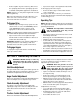 Auger Drive Control To change the direction in which discharged snow is thrown, proceed as follows: • Push the toggle switch to the left to rotate the chute counterclockwise. • Push the toggle switch to the right to rotate the chute clockwise. The auger drive control is located on the left handle. Squeeze the control grip to engage the augers. Release to stop the snow throwing action. (Traction control must also be released.) See Figure 8.