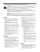 3. 4. 5. 6. 7. 8. 9. 10. 11. 12. 13. 14. 15. 16. 17. 18. 19. The clutch levers must operate easily in both directions and automatically return to the disengaged position when released. Never operate with a missing or damaged discharge chute. Keep all safety devices in place and working. Never run an engine indoors or in a poorly ventilated area. Engine exhaust contains carbon monoxide, an odorless and deadly gas. Do not operate machine while under the influence of alcohol or drugs.