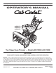 This Operator’s Manual is an important part of your new snow thrower. It will help you assemble, prepare and maintain the unit for best performance. Please read and understand what it says. Table of Contents Customer Support............................................... 2 Safety Labels....................................................... 3 Safe Operation Practices.................................... 4 Setting Up Your Snow Thrower........................... 6 Operating Your Snow Thrower..................