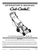 Safety • Assembly • Operation • Tips & Techniques • Maintenance • Troubleshooting • Parts Lists • Warranty OPERATOR’S MANUAL 21-inch Self-Propelled Mower — Model 949 IMPORTANT READ SAFETY RULES AND INSTRUCTIONS CAREFULLY BEFORE OPERATION Warning: This unit is equipped with an internal combustion engine and should not be used on or near any unimproved forest-covered, brushcovered or grass-covered land unless the engine’s exhaust system is equipped with a spark arrester meeting applicable local or state law