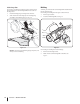 Side Discharge Chute Mulching To convert to side discharge, make sure grass catcher is off of the unit. Replace the rear mulching baffle and close the rear discharge door. To mulch, you will need the rear mulching baffle installed below the rear discharge door. 1. Lift the mulching plug on the right side of mower. 2. Slide chute hooks under hinge pin on mulching plug assembly. Lower mulching plug. See Fig. 3-6. If converting to mulching from the grass collection mode: 1. Remove grass catcher. 2.