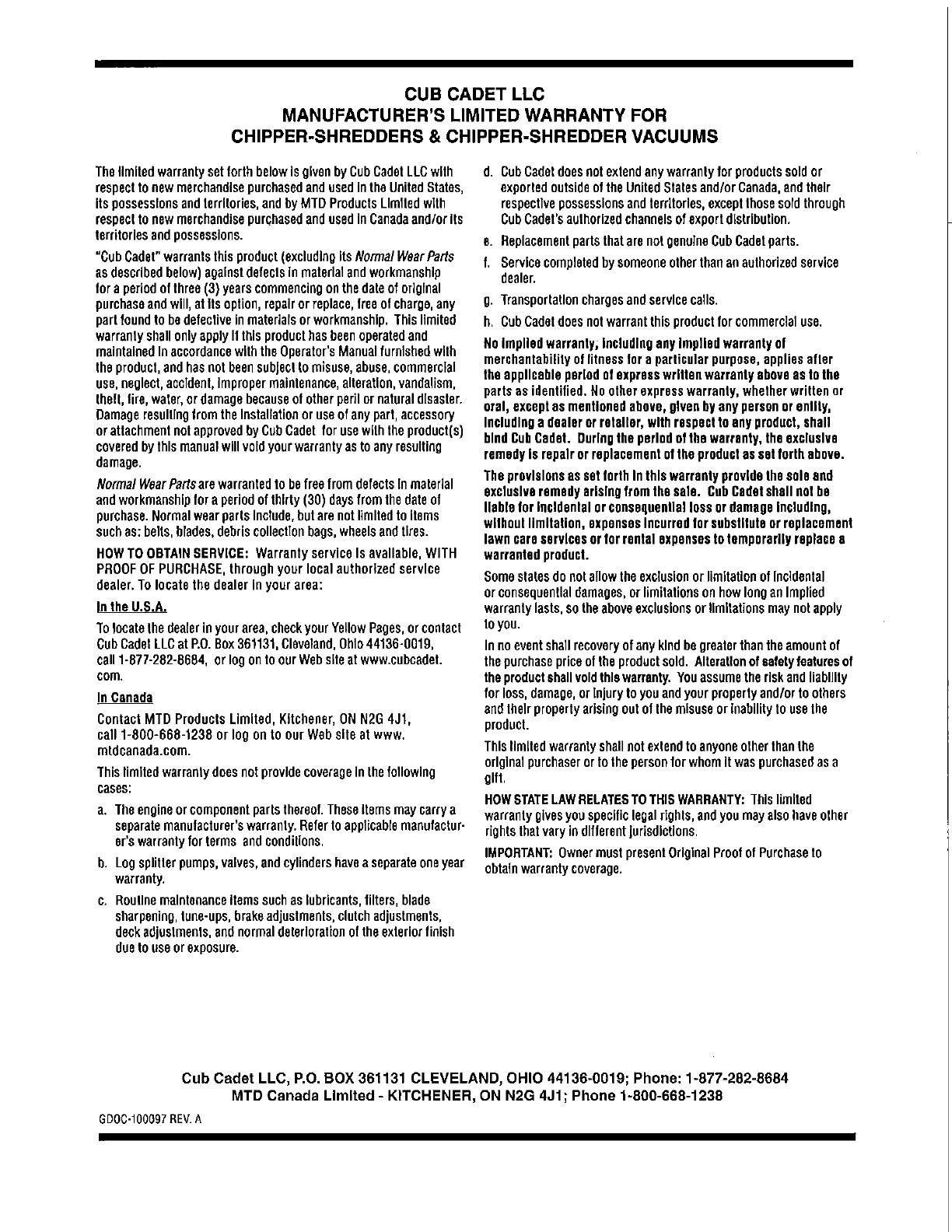 Cub Cadet Manuals