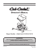 Safe Operation Practices • Set-Up • Operation • Maintenance • Service • Troubleshooting • Warranty Operator’s Manual Model Series CS 2210 Chipper Shredder — Model Series CS 2210 & CS 3210 WARNING READ AND FOLLOW ALL SAFETY RULES AND INSTRUCTIONS IN THIS MANUAL BEFORE ATTEMPTING TO OPERATE THIS MACHINE. FAILURE TO COMPLY WITH THESE INSTRUCTIONS MAY RESULT IN PERSONAL INJURY. CUB CADET LLC, P.O. BOX 361131 CLEVELAND, OHIO 44136-0019 Printed In USA Form No.