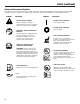 Safety (continued) Safety and International Symbols This operator's manual describes safety and international symbols and pictographs that may appear on this product. Read the operator's manual for complete safety, assembly, operating and maintenance and repair information. SYMBOL MEANING • SAFETY ALERT SYMBOL Indicates danger, warning, or caution. May be used in conjunction with other symbols or pictographs.