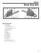 Safety (continued) • Use caution when handling fuel. Move the chain saw at lest 10 feet (3 m) from the fueling point before starting the engine. • Store the unit in a dry area, locked up, located up high and located out of the reach of children to prevent unauthorized use or damage. • Do not allow other persons to be near the chain saw when starting or cutting with the chain saw. Keep bystanders and animals out of the work area. • Never douse or squirt the unit with water or any other liquid.