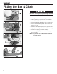 Maintenance (continued) 40 GUIDE BAR The guide bar has a sprocket at its base that must be lubricated with grease using a lubrication syringe (Fig. 40). Reverse the guide bar every 8 working hours to ensure uniform wear. Keep the bar groove and lubrication hole clean using the bar groove cleaner (Fig. 41). Check the bar rails frequently for wear. If they are sufficiently worn, remove the burs and square-up the rails using the flat file (Fig. 42). 41 Never mount a new chain on a worn sprocket (Fig. 43).