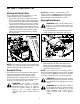 . Follow the manufacturer’s recommendations for wheel weights or counterweights to improve stability. 5. Use extra care with grass catchers or other attachments. These can change the stability of the machine. 6. Keep all movement on the slopes slow and gradual. Do not make sudden changes in speed or direction. Rapid engagement or braking could cause the front of the machine to lift and rapidly flip over backwards which could cause serious injury. 7. Avoid starting or stopping on a slope.