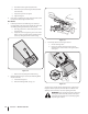 4. a. Hold blade control against upper handle. b. Pull starter rope out of the engine. Release blade control handle. c. Slip starter rope into rope guide. d. Tighten wing nut. Insert post on cable ties into holes provided on the lower handle. Pull cable tie tight and trim excess. A Grass Catcher 1. Follow steps below to assemble the grass catcher (if needed). Make certain bag is turned right side out before assembling (warning label will be on the outside). a.