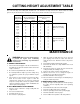 CUTTING HEIGHT ADJUSTMENT TABLE Note: The front edge of the cutting deck should be 1/8” - 1/4” below the rear edge of the deck so that the blades are cutting grass in only the front half of their circular path. This decreases friction and reduces the drive power required.