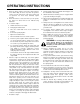 OPERATING INSTRUCTIONS Releasing the operator presence levers with either the transmission shift lever in gear or the blade clutch engaged will shut off the engine. B. Initial Adjustments 1. Disconnect the spark plug wire. 2. Check the tire pressure. Drive Wheels should be inflated to 25 psi. Caster Wheels should be inflated to 15 psi. Note: New tires are overinflated in order to properly seat the bead to the rim. 3. Check that all nuts, bolts and screws are tight. 4.