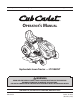 Safe Operation Practices • Set-Up • Operation • Maintenance • Service • Troubleshooting • Warranty Operator’s Manual Hydrostatic Lawn Tractor — LTX1050VT WARNING READ AND FOLLOW ALL SAFETY RULES AND INSTRUCTIONS IN THIS MANUAL BEFORE ATTEMPTING TO OPERATE THIS MACHINE. FAILURE TO COMPLY WITH THESE INSTRUCTIONS MAY RESULT IN PERSONAL INJURY. CUB CADET LLC, P.O. BOX 361131 CLEVELAND, OHIO 44136-0019 Printed In USA Form No.