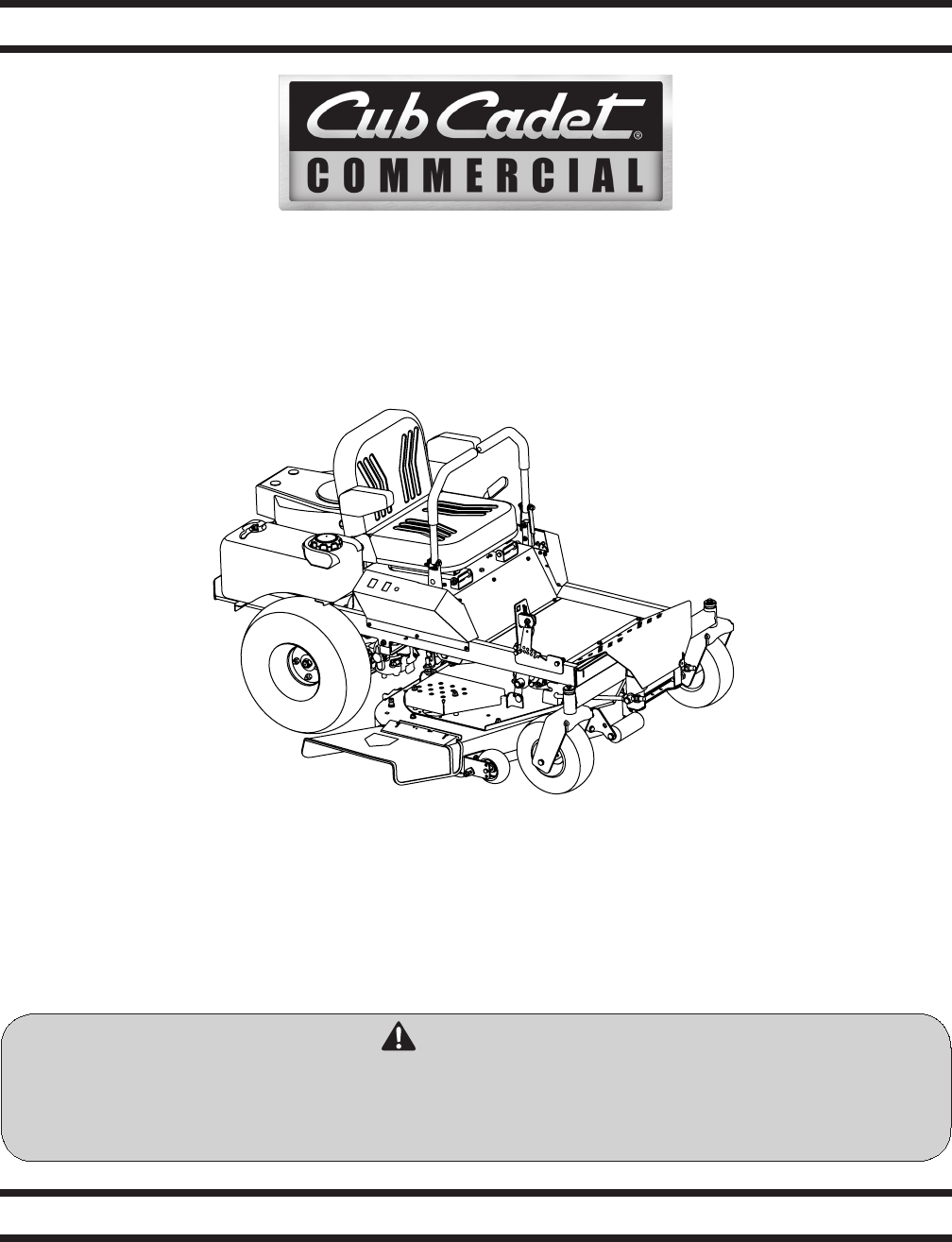 1 To The Owner Thank You Thank you for purchasing a Cub Cadet Commercial Zero-Turn Tractor. It was carefully engineered to provide excellent performance when properly operated and maintained. Please read this entire manual prior to operating the equipment. It instructs you how to safely and easily set up, operate and maintain your machine. Please be sure that you, and any other persons who will operate the machine, carefully follow the recommended safety practices at all times.