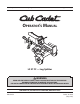 Safe Operation Practices • Set-Up • Operation • Maintenance • Service • Troubleshooting • Warranty Operator’s Manual LS 27 CC — Log Splitter WARNING READ AND FOLLOW ALL SAFETY RULES AND INSTRUCTIONS IN THIS MANUAL BEFORE ATTEMPTING TO OPERATE THIS MACHINE. FAILURE TO COMPLY WITH THESE INSTRUCTIONS MAY RESULT IN PERSONAL INJURY. CUB CADET LLC, P.O. BOX 361131 CLEVELAND, OHIO 44136-0019 Printed In USA Form No.