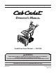Safe Operation Practices • Set-Up • Operation • Maintenance • Service • Troubleshooting • Warranty Operator’s Manual Track Drive Snow Thrower — 728 TDE WARNING READ AND FOLLOW ALL SAFETY RULES AND INSTRUCTIONS IN THIS MANUAL BEFORE ATTEMPTING TO OPERATE THIS MACHINE. FAILURE TO COMPLY WITH THESE INSTRUCTIONS MAY RESULT IN PERSONAL INJURY. CUB CADET LLC, P.O. BOX 361131 CLEVELAND, OHIO 44136-0019 Printed In USA Form No.