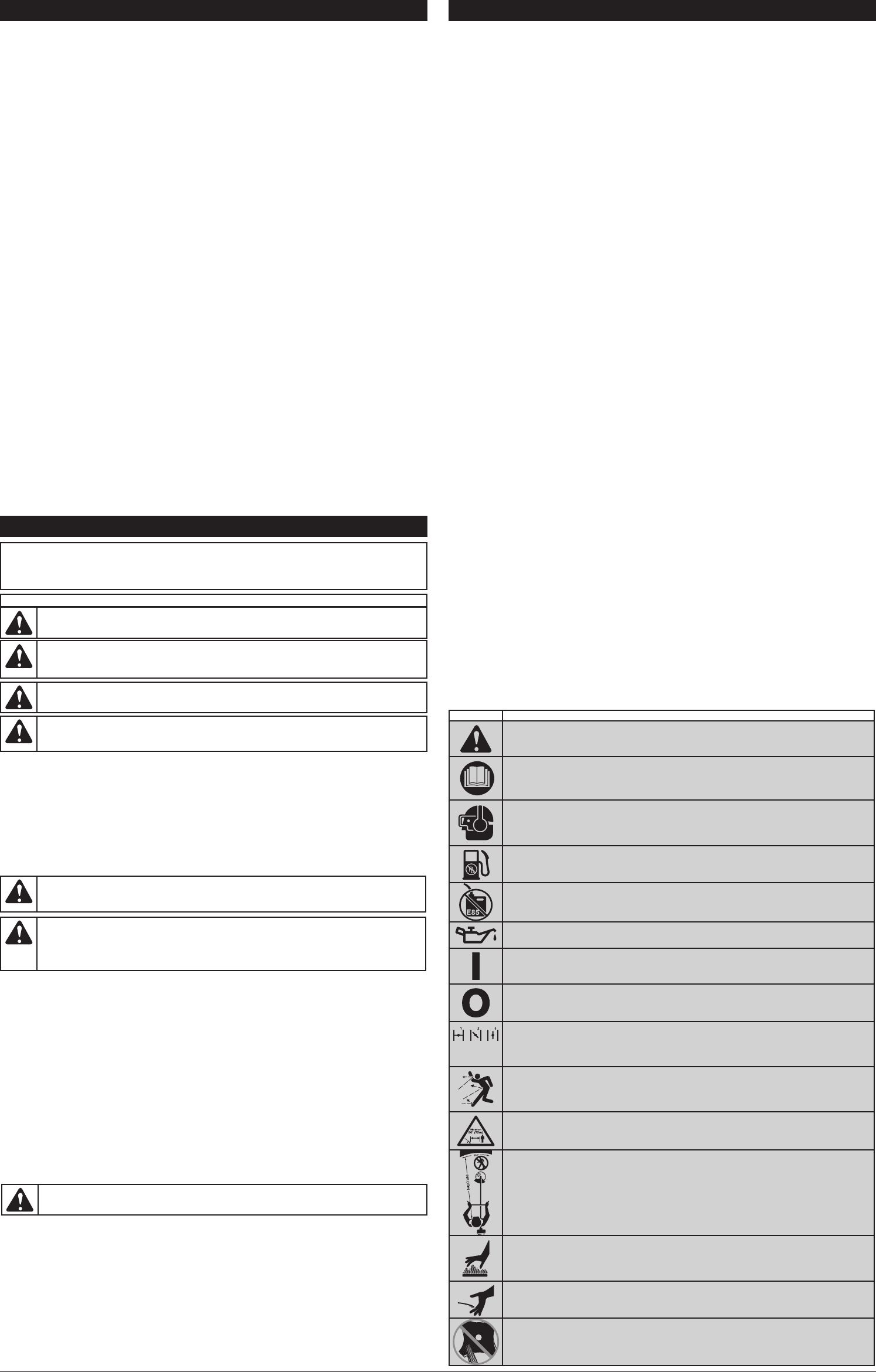 • The cutting attachment may spin during idle speed adjustments. Wear protective clothing and observe all