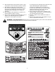 . Follow the manufacturer’s recommendations for wheel weights or counterweights to improve stability. 5. Use extra care with grass catchers or other attachments. These can change the stability of the machine. 6. Keep all movement on the slopes slow and gradual. Do not make sudden changes in speed or direction. Rapid engagement or braking could cause the front of the machine to lift and rapidly flip over backwards which could cause serious injury. 7. Avoid starting or stopping on a slope.
