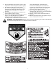. Follow the manufacturer’s recommendations for wheel weights or counterweights to improve stability. 5. Use extra care with grass catchers or other attachments. These can change the stability of the machine. 6. Keep all movement on the slopes slow and gradual. Do not make sudden changes in speed or direction. Rapid engagement or braking could cause the front of the machine to lift and rapidly flip over backwards which could cause serious injury. 7. Avoid starting or stopping on a slope.