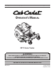 Safe Operation Practices • Set-Up • Operation • Maintenance • Service • Troubleshooting • Warranty Operator’s Manual RZT S Series Tractor WARNING READ AND FOLLOW ALL SAFETY RULES AND INSTRUCTIONS IN THIS MANUAL BEFORE ATTEMPTING TO OPERATE THIS MACHINE. FAILURE TO COMPLY WITH THESE INSTRUCTIONS MAY RESULT IN PERSONAL INJURY. CUB CADET LLC, P.O. BOX 361131 CLEVELAND, OHIO 44136-0019 Printed In USA Form No.