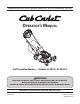 Safe Operation Practices • Set-Up • Operation • Maintenance • Service • Troubleshooting • Warranty Operator’s Manual Self Propelled Mower — Models SC 500 Z/ SC 500 EZ WARNING READ AND FOLLOW ALL SAFETY RULES AND INSTRUCTIONS IN THIS MANUAL BEFORE ATTEMPTING TO OPERATE THIS MACHINE. FAILURE TO COMPLY WITH THESE INSTRUCTIONS MAY RESULT IN PERSONAL INJURY. CUB CADET LLC, P.O. BOX 361131 CLEVELAND, OHIO 44136-0019 Printed In USA Form No.