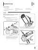 3. Follow the steps below to complete handle assembly: a. 4. Pull upward on the handle approximately 8 inches until holes in lower handle (shown in Figure 3-3 deck cutaway) line up with holes in handle bracket. See Figure 3-4. The rope guide is attached to the right side of the upper handle. Loosen the wing knob which secures the rope guide. See Figure 3-6. a a b b d b c Figure 3-6 Figure 3-4 NOTE: When pulling upward on handle, make sure to not pull handle all the way out. b. c.