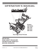 This Operator’s Manual is an important part of your new snow thrower. It will help you assemble, prepare and maintain the unit for best performance. Please read and understand what it says. Table of Contents Safety Labels....................................................... 3 Safe Operation Practices.................................... 4 Setting Up Your Snow Thrower........................... 6 Operating Your Snow Thrower.......................... 10 MakingAdjustments.....................................