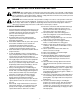 lock-open device. e. Extinguish all cigarettes, cigars, pipes and other sources of ignition. f. Never fuel machine indoors. g. Never remove gas cap or add fuel while the engine is hot or running. Allow engine to cool at least two minutes before refueling. h. Never over fill fuel tank. Fill tank to no more than ½ inch below bottom of filler neck to allow space for fuel expansion. i. Replace gasoline cap and tighten securely. j. If gasoline is spilled, wipe it off the engine and equipment.