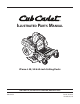 To The Owner Thank You Thank you for purchasing a Cub Cadet Zero-Turn Tractor. It was carefully engineered to provide excellent performance when properly operated and maintained. All information in this manual is relative to the most recent product information available at the time of printing. Please be aware that this Illustrated Part’s Manual may cover a range of product specifications for various models. Components listed and/or illustrated in this manual may not be applicable to all models.