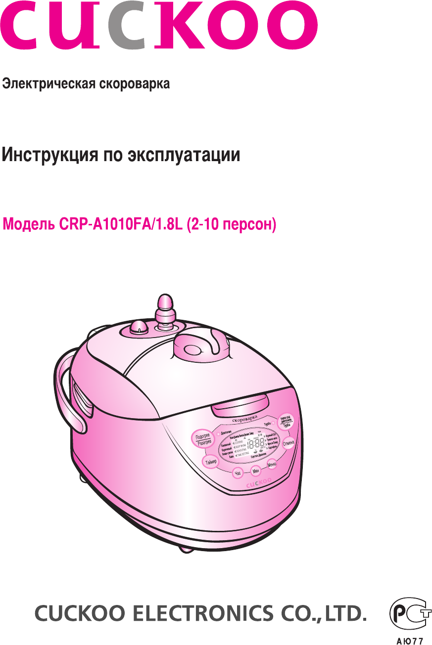 Electric Pressure Rice Cooker / Warmer 전기 압력 보온 밥솥 Operating Instructions 사용설명서