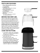 PARTS AND FEATURES 1. Butter Warming/Measuring Cup ½-cup capacity 2. Popping Chute removable for dishwasher cleanup 3. Stay-Cool Housing with elegant embossed logo 4. On/Off Switch easy one-touch operation 5. BPA Free All materials that come in contact with food are BPA free. 1 BEFORE THE FIRST USE 2 Remove all packaging and any promotional labels or stickers from your popcorn maker.